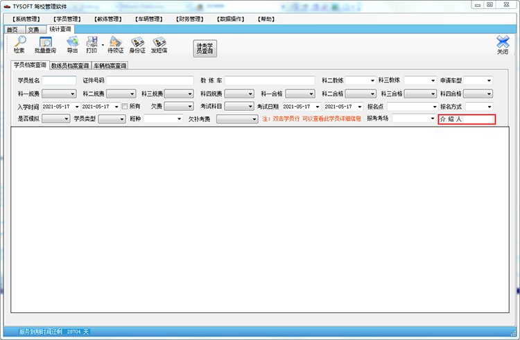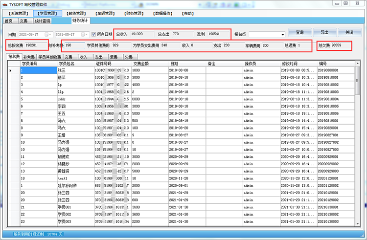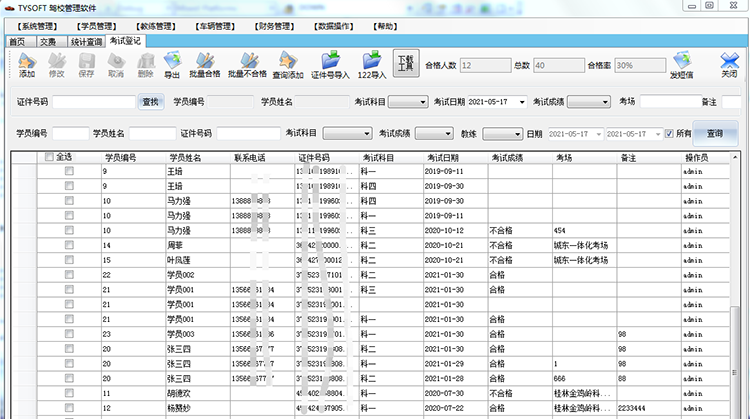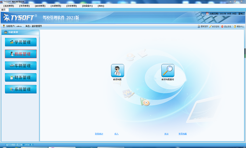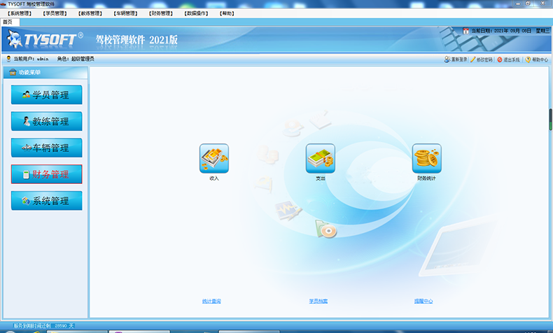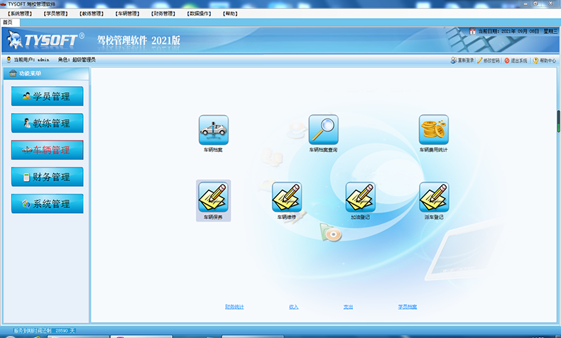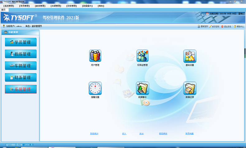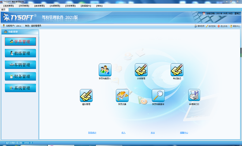 TYSOFT驾培系统电脑端 面向驾驶学校实现内部信息化管理,让驾校管理者和工作人员更高效、更快捷的完成枯燥无味的工作。改变驾校传统的手工文档管理的工作方式。实现信息化、网络化、安全的统一管理。 软件用户名:admin 密码为空 |