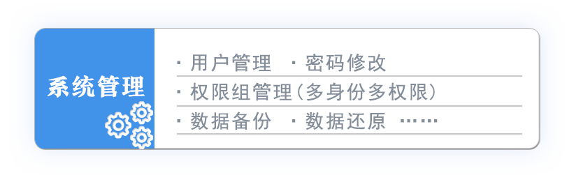 01 / 多用户多权限 “快速”、“灵活”、“简单”, 唯一管理员账号,可添加多个主账号,每个主账号拥有独立的数据。每个主账号可添加多个子账号。每个账号都有属于自己独立的权限。 |